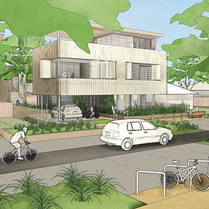 This is a deceptively simple, compact and affordable idea that retains and builds under the existing house while placing two micro-dwellings out the back. It demonstrates what is possible when people, not cars are invited into backyards.