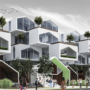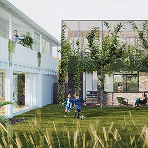 The concept merges three sometimes-maligned housing forms – the six pack, the McMansion and the share-house – into a new flexible built form that offers a place to live for singles, couples, small young families, established families and empty-nesters.